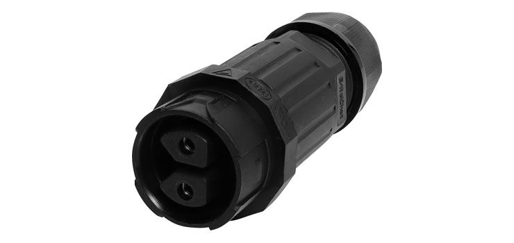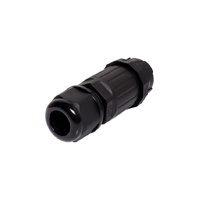 This waterproof IP68 2 pin connector features a screwless termination and locking connection to mating connectors (see P8660 for male line plug). This makes it an ideal joiner for applications that are often disconnected and reconnected, but is also suitable for static installation. It features a high level of moisture and dust resistance at IP68 with flame retardant plastics.  With a current rating up to 30A it is ideal for DC wiring in vehicle, caravan and 4WD power systems.