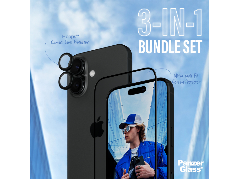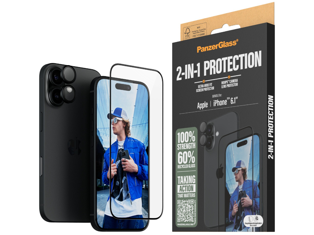 Overview:"Want to protect your phone? I mean REALLY protect your phone? Then this 2-in-1 protection pack from PanzerGlass® is for you! Featuring an Ultra-Wide Fit Screen Protector and a Hoops™ Camera Lens Protector this pack shields your phone from scratch-creating bumps against sharp-edged corners phone-cracking falls onto stone-hard pavements and just about anything else life might throw at you. The screen protector even has a smudge-free coating that reduces traces of fingerprints and grease. The screen protector is made of 60% recycled material and provides ultra high scratch resistance. And what about the Hoops™ Camera Lens Protector? It keeps your camera lenses free from scratches and cracks that would leave permanent scars on all future photos.|Features:- Protects your high-tech camera lenses without affecting the quality of your photos. - Ultra-Wide Fit Covers the entire front surface of your device to provide a complete and clear view of your screen while still leaving room for a case. - Protects against crushing falls onto stone-hard pavements unforgiving bathroom floors and other device-smashing surfaces. - Doesn’t affect the clarity of your lenses nor the quality of your photos - Scratch resistant. Protects your device from scratching caused by the hazards of everyday life. - Keeps your device safe from your everyday fumbling dropping and screen cracking. - Easy installation so easy to install you can do it even if you’re all thumbs. - Feels like the original screen with 100% touch sensitivity. - Comes with an EasyAligner that makes installation so simple you can do it perfectly even if you’re all thumbs. - Crystal-clear view so clear that you might not even notice it's there.|