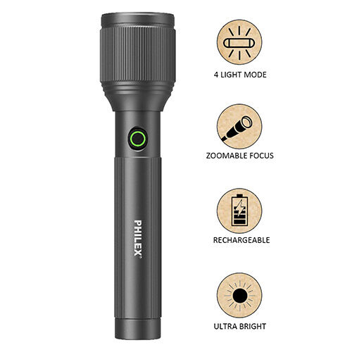 A high-performance 15W LED flashlight delivering 1500lm brightness and up to 368 m beam distance.