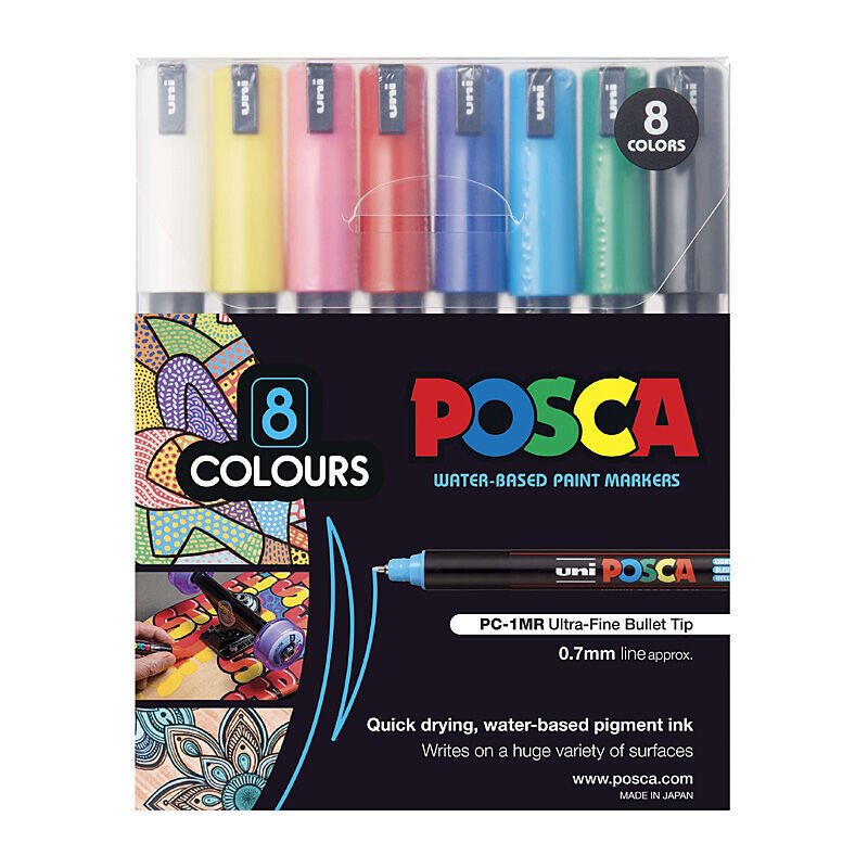 POSCA paint markers feature quick drying, water-based pigment ink. POSCA markers are available in a wide variety of colours and tip sizes and write on a huge variety of surfaces including paper, metal, glass, wood and plastic.