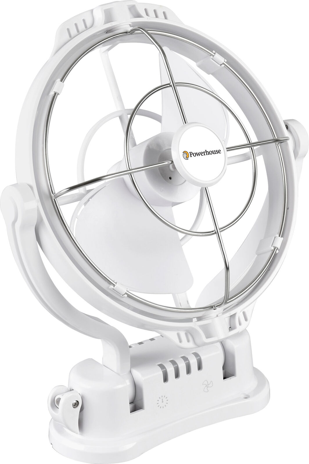 Stay comfortable on the road or off the grid with the Powerhouse 12-24V DC 360° caravan fan. Designed specifically for fixed installation in caravans, camper trailers, sheds or tiny homes! This fan delivers flexible, quiet airflow and works with both 12V and 24V power systems. Designed to use minimal energy, making it ideal for battery-powered or solar setups that need to make every watt count. In-built off timer allows you to prevent unwanted energy loss by switching off after 3, 6, 9, or 12 hours. Fan power and speed is easily controlled via the touch buttons on either side of the fan base or using the included remote control. When not in use, the wall bracket allows the fan to fold flat and lock into place until the next time you set up camp!