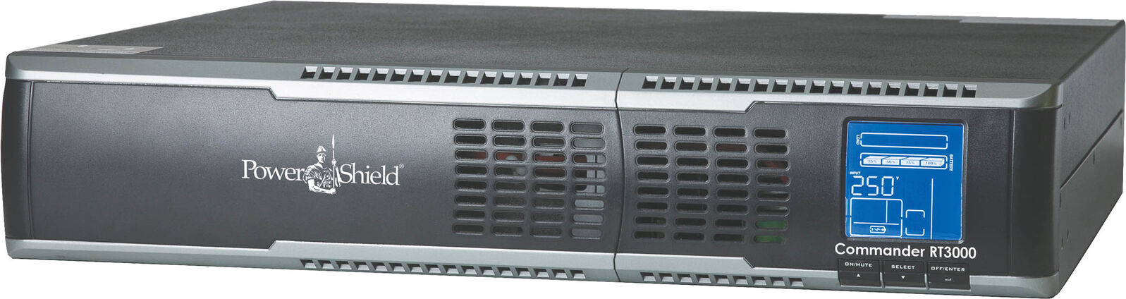 The Powershield Commander 3000VA Uninterruptible Power Supply (UPS) is perfect for servers, motor driven and sensitive devices requiring a perfect sine wave to operate correctly. LCD provides real time battery management, showing battery and load level. All outlets are battery backup and surge protected. Includes software which communicates via USB or RS-232. All provide phone line surge protection (RJ45). Typical backup:?5 min full load, 14 min half load.