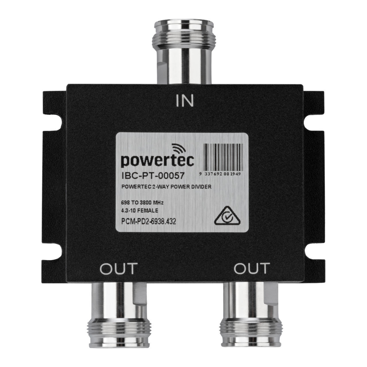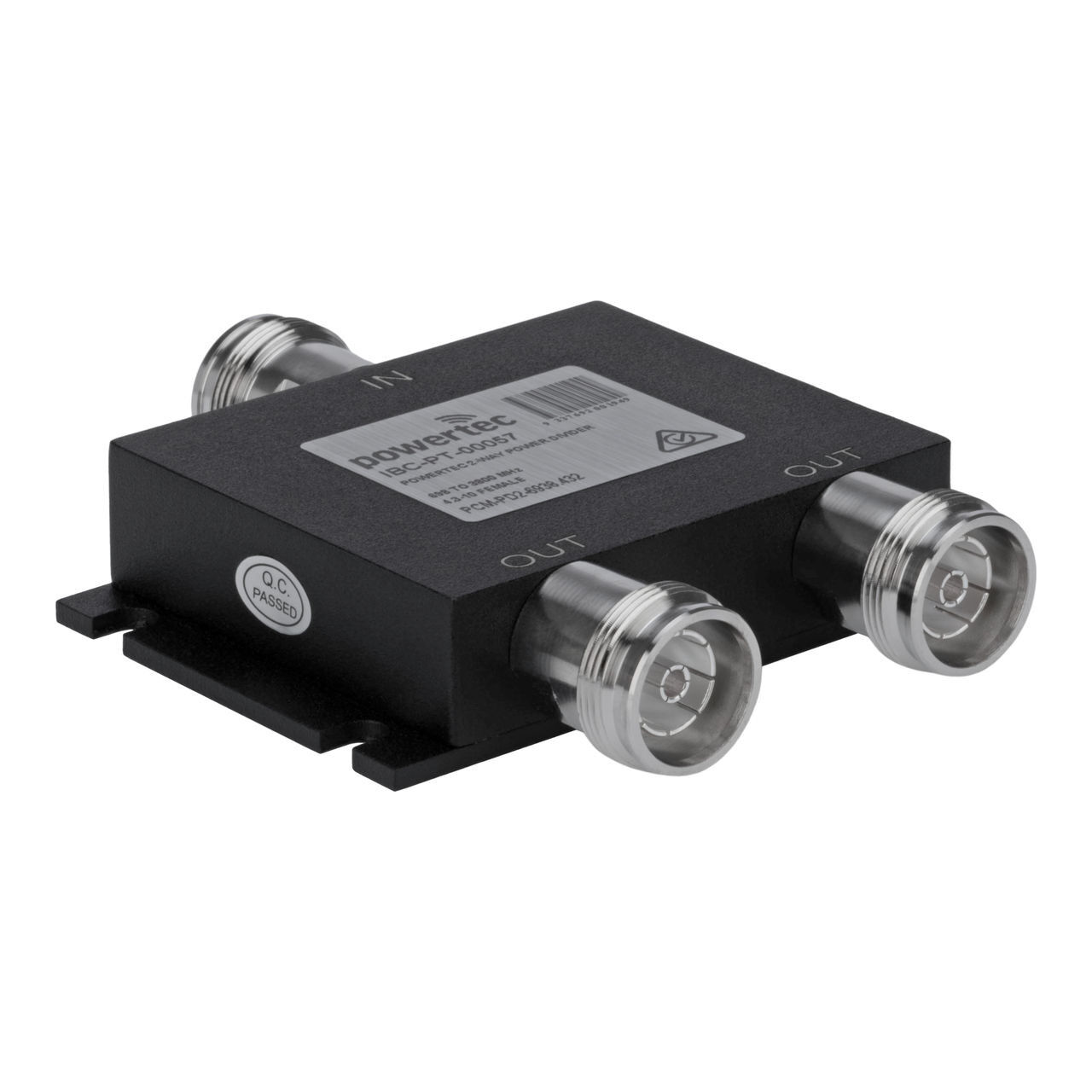 The Powertec RF Power Divider is designed for efficient signal distribution across a wide frequency range of 698 to 3800 MHz. Ideal for wireless, RF, and microwave systems, it delivers clean signal separation with minimal interference. This 2-way divider supports multiple configuration options and ensures high performance through robust design and high isolation levels.