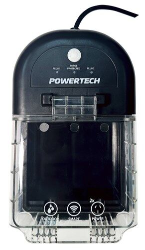 The Powertech Smart Outdoor Socket has two mains outlets within a weatherproof enclosure, safe for outdoor use. The Outlets can be controlled via a button on the unit, or individually via a smartphone app. When connected via the app and used in a location with adequate WiFi network strength, you can use your smartphone to control power to your outdoor gadgets, pool pump, irrigation system and much more, even when you are not home.