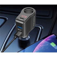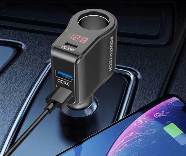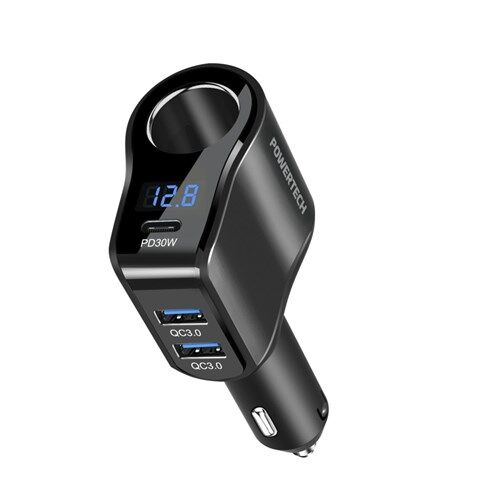 This multi-device adapter expands one cigarette lighter output to three additional ports consisting of one PD30W USB-C port and two USB-A QC3.0 ports, providing smooth power charging for any device while also maintaining car interior neatness. Provides up to 200W of combined power output to deliver fast charging for smartphones and other USB powered devices while still allowing use of the cigarette socket.