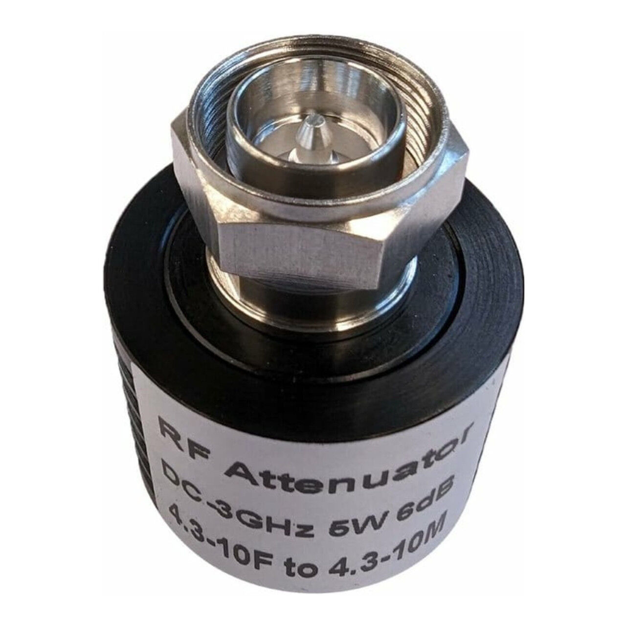 The Powertec RF Attenuator, 6 dB, 4.3-10 Female to 4.3-10 Male is a precision-engineered passive coaxial component designed to manage signal strength effectively. With a specified attenuation of 6 dB, this attenuator helps reduce signal power without compromising the quality of the transmitted signals. It's particularly beneficial in applications requiring precise signal control, ensuring optimal performance in various communication systems.