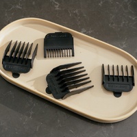 4 Comb lengths 3-8mm. Also includes Scissors and comb, protective blade cover, maintenance oil and cleaning brush.