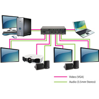 • Allows two VGA source devices to provide video and audioto four displays / projectors.