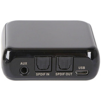 The 2-in-1 Prolink BRX-2000C Wireless BT audio sender and receiver allows you to transmit audio from an analogue audio source to a wireless BT enabled headphone or speaker. You can also use it to receive wireless audio for a wired headphone or speaker system from a wireless BT audio transmitter. This device supports aptX HD, aptX low latency and aptX normal codec. It features BT 5.0 with 10M connection range. It includes built-in battery for up to 12 hours of portable use. It has a 3.5mm AUX audio socket, TOSLINK in, and TOSLINK out socket. Ultra compact. Dimension: 58x55x20mm. Includes 3.5mm stereo cable, 3.5mm to 2x RCA stereo cable and micro USB charging cable.