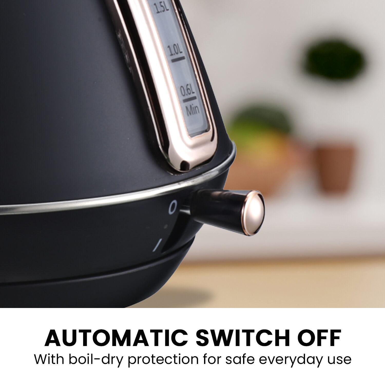 The kettle is as functional as it is stunning, with a pull-up lid and large spout for easy refilling and pouring. It also has boil-dry protection and an automatic switch-off for safe and convenient use.