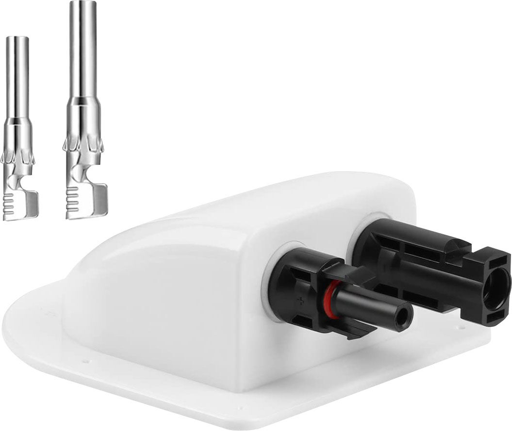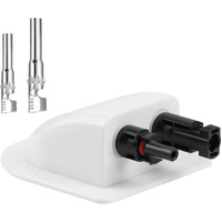 A handy MC4 dual gland cable entry point for caravans, campers and vehicles with roof mounted solar panels. Can be surface mounted using silastic or similar weatherproof adhesive. Size: 107W x 99D x 44Hmm.
