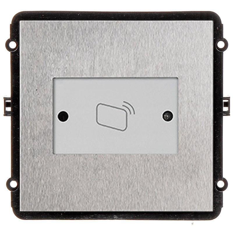 The INTIPVDSR is a reader door station module for the VIP Vision Multi-Tenant Intercom Series. This compact unit features a robust stainless steel front pane with an RFID card reader to scan registered cards/tags for quick, secure access.