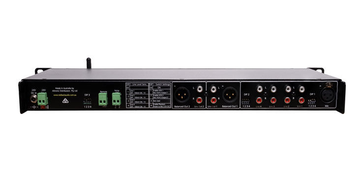 Additional features include VOX muting from the mic input, 24V DC operation with battery backup terminals, and a compact 1RU 19" rack-mount chassis. Designed and assembled in Australia, the unit is backed by a 10-year warranty, offering installers a robust and versatile option for multi-source audio systems.