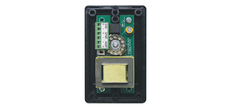 Designed to control 100V line speaker systems these attenuators are fitted to industry standard wall plates and install into an electrical wall box. They feature 11 position switches for fine adjustment of sound level. All circuitry is housed on a PCB with screw terminals for easy installation. They include override relay for emergency paging applications & a 22µF bipolar capacitor for line monitoring purposes. This model features pluggable terminals for easier installation.