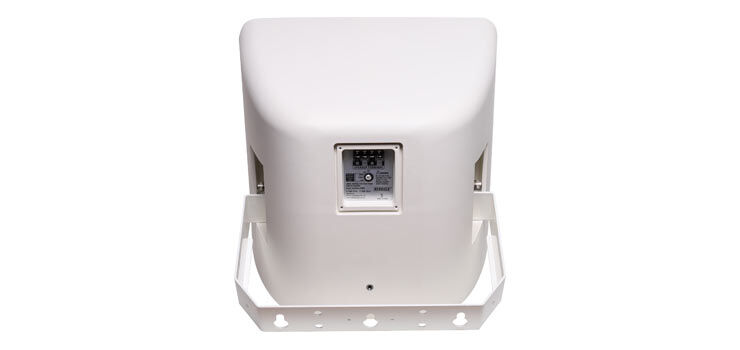 This all weather long throw PA speaker features a two-way driver, including 12-inch woofer and 1.75-inch tweeter for PA sound projection. It offers the flexibility of 8 ohm or 100V line settings with a total power handling up to 600W and max 100V power tap of 300W. This makes it ideal for dispersing sound across large open areas like parks, stadium concourses and public open spaces. The connection panel on the rear offers rotary power tap selection and loop in, loop out terminals for simply termination in the speaker chain (extra cable gland and knock out on rear panel provided). All connections are covered by a sealed screw in panel preventing moisture and dust ingress to a rating of IP55.