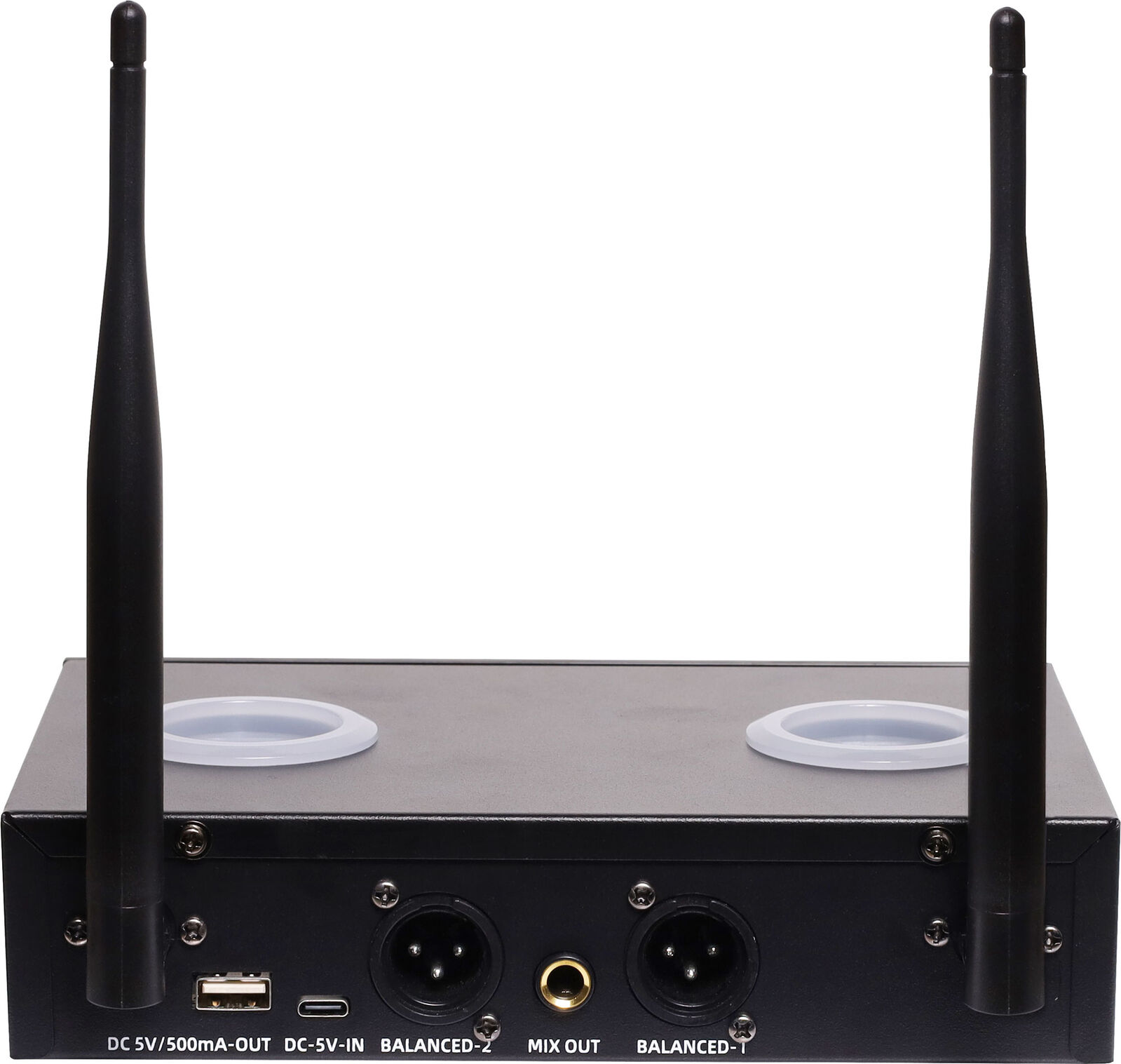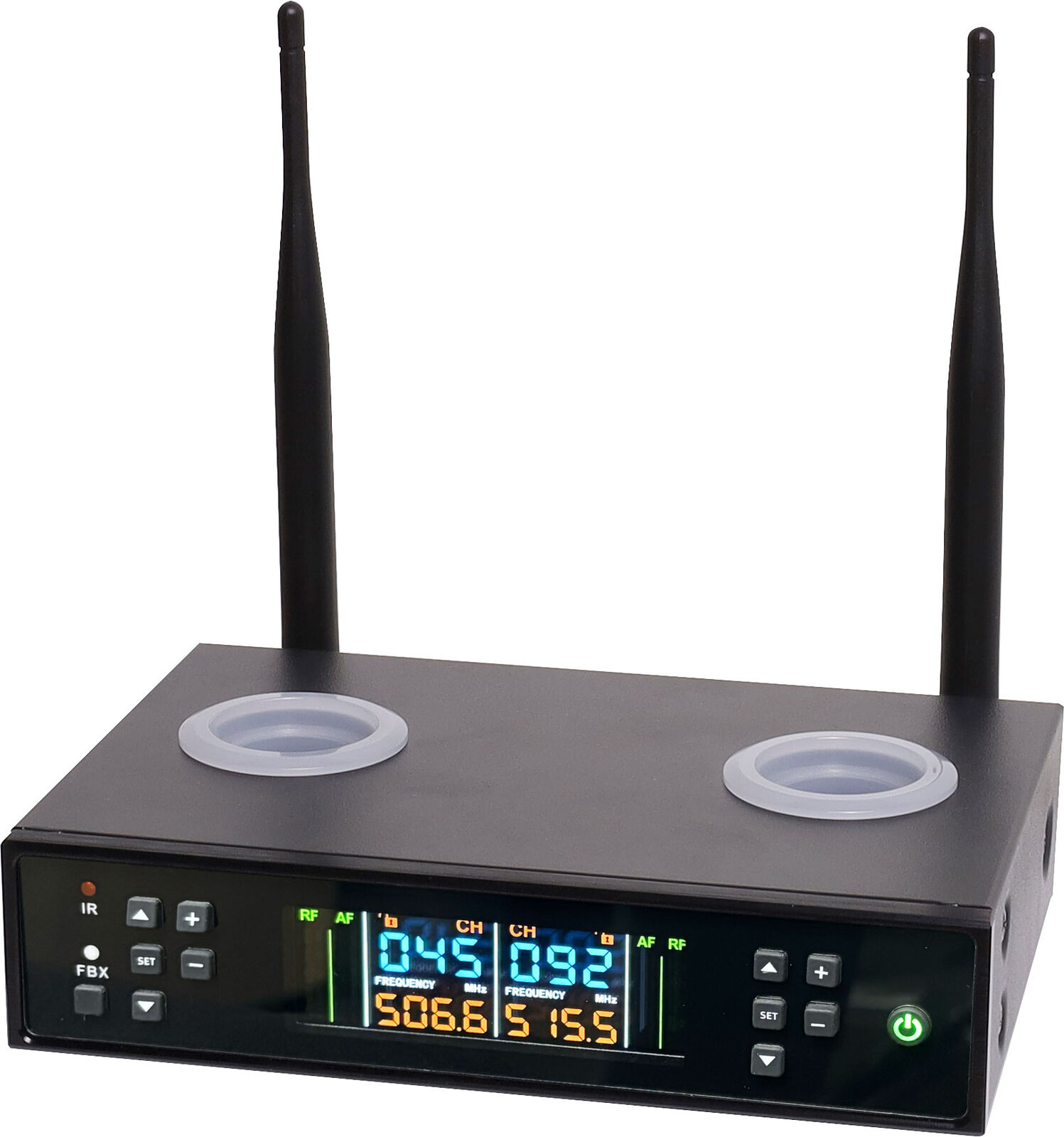 • Special features:  Top mount charging ports for microphones  Anti-feedback function