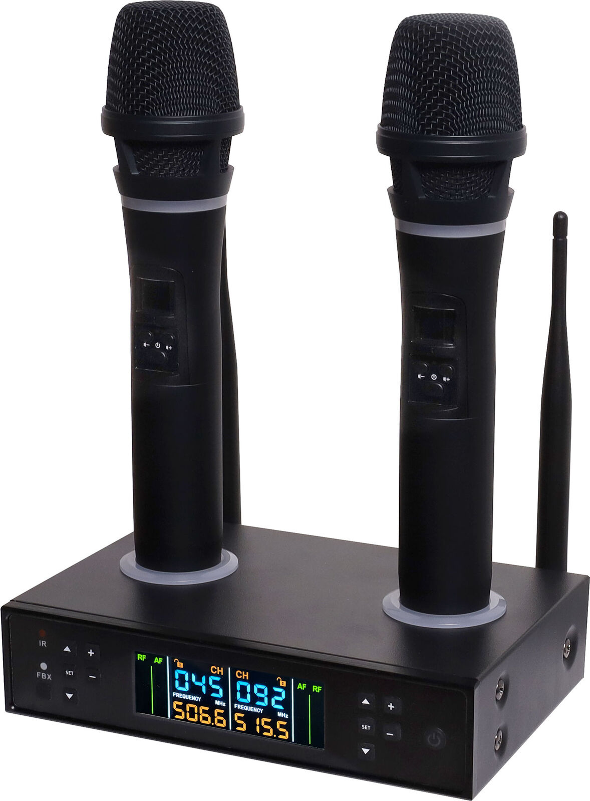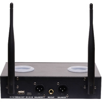 This UHF wireless microphone system delivers reliable and high-quality audio performance with 38 selectable UHF frequencies across two groups, ensuring interference-free operation. It features easy infrared pairing between the receiver and transmitters for quick frequency selection. The microphones can be conveniently recharged via ports located directly on the receiver so they are always ready to go. With a built-in feedback reduction function, individual AF/RF signal strength indicators, and a bright, easy-to-read front panel display, this system offers simple, intuitive operation making it ideal for venues, schools, training facilities and sports clubs.