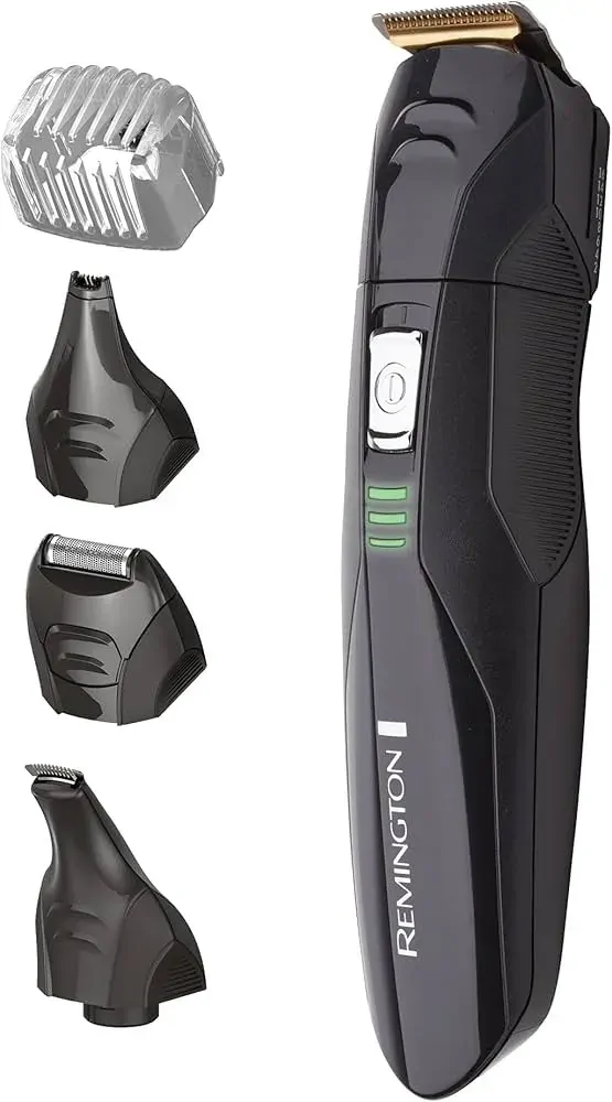 5-in-1 Titanium Multi Grooming Kit Titanium coated trimmer blade Trimmer blades never need oiling* Cordless (rechargeable) operation Up to 60 minutes of cordless run time, 16 Hour full charge Charging indicator light Interchangeable attachments: 32mm Trimmer Adjustable beard comb with 8 length settings (1-8mm) Mini foil shaver Arc detail trimmer, Nose and ear trimmer Adjustable hair clipper comb with 8 length settings (9-16mm) Storage pouch *20mm & 32mm Trimmer attachments will require oiling if rinsed under water