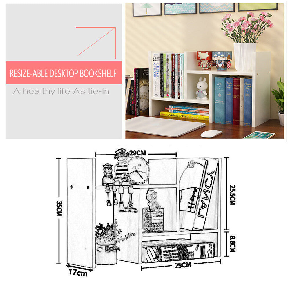 Resize-able Thick Wood Desktop Bookshelf Display R