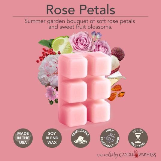 Classic Fragrance Wax Melt Collection from Candle Warmers Etc. is made of soy wax, which is creamy and smooth, combined with rich colors and the finest home fragrance. Our proprietary soy wax holds a high fragrance load, providing a strong and clean throw compared to traditional waxes. They can be used in our wide variety of fragrance warmers. 2.5 oz wax melts have a melt time of 30 hours.