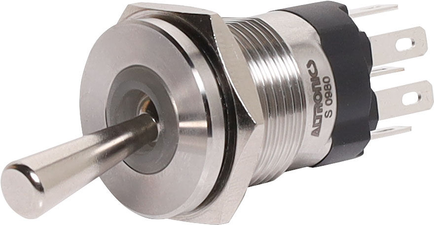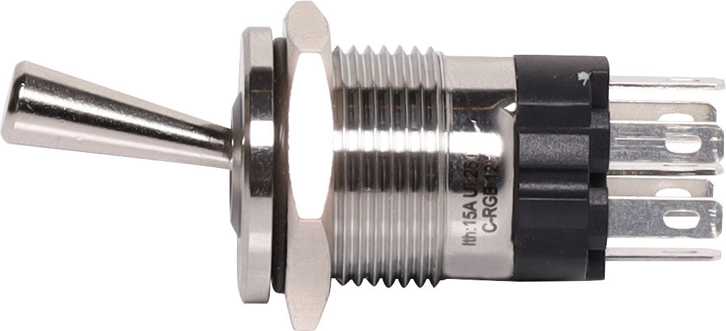 A robust IP67 rated metal toggle switch with RGB lighting ring. SPDT type.