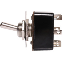 DPDT metal toggle switch with 3A rating @ 250V AC. With On-Off plate and metal actuator.