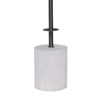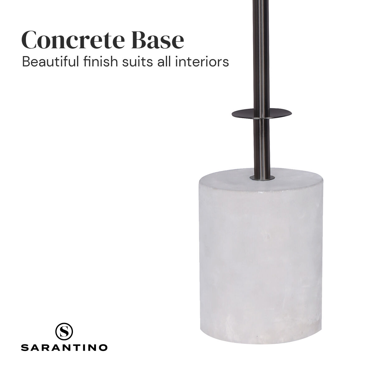 This table lamp boasts an elegant and luxurious design, featuring a sleek metal pole and plate that perfectly complement its concrete base and white linen fabric shade.