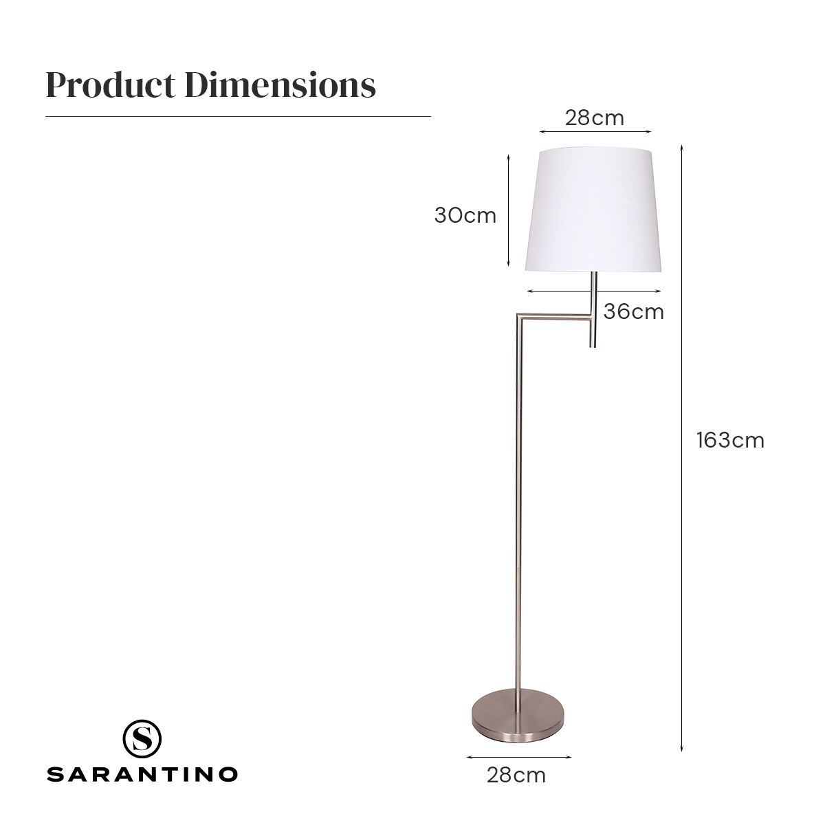 This modern floor lamp has a neat design and easily fits most decor styles from mid-century modern to traditional and contemporary. The nickel finish pairs with the tapered lampshade to make you feel warm, cozy and at home in any room. The shade directs light downwards, making this lamp perfect for a reading nook. Let the shade hang over your sofa, armchair or desk for added illumination.