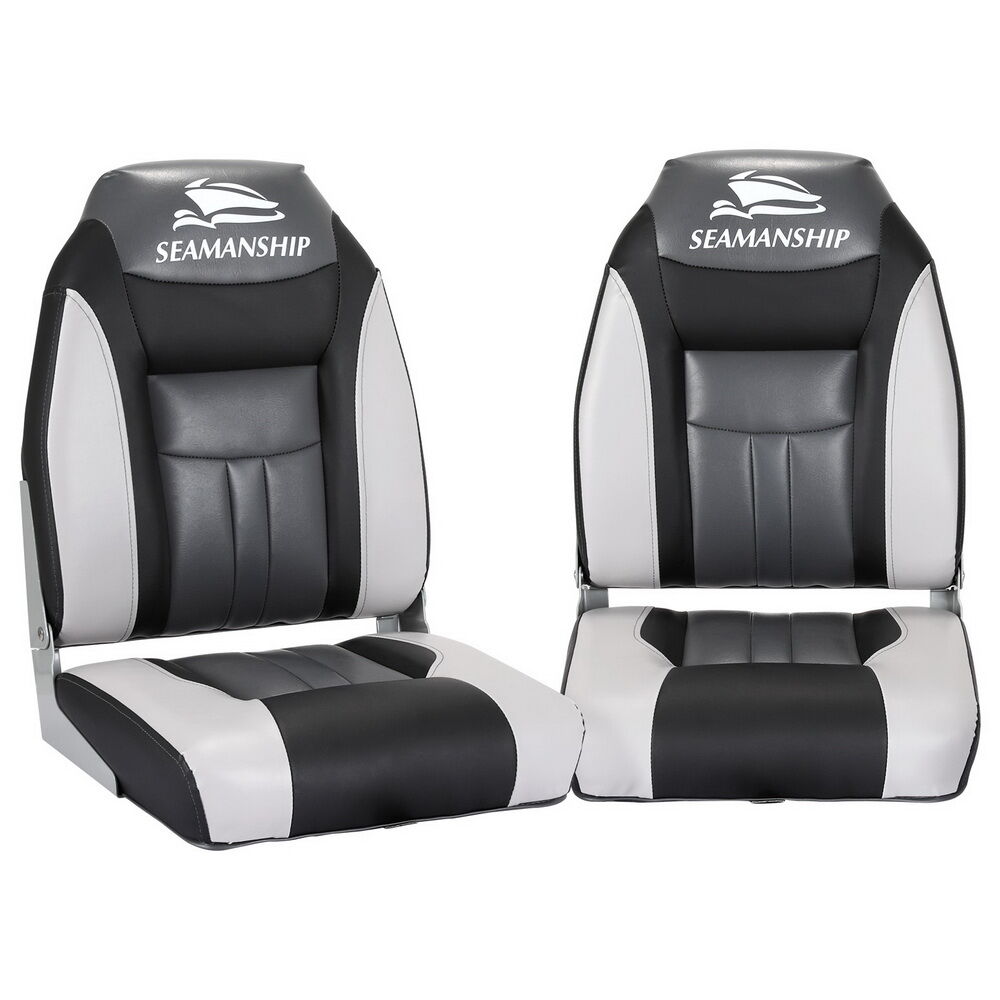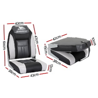 Set of 2 Swivel Folding Boat Seats - Grey Black