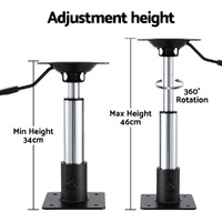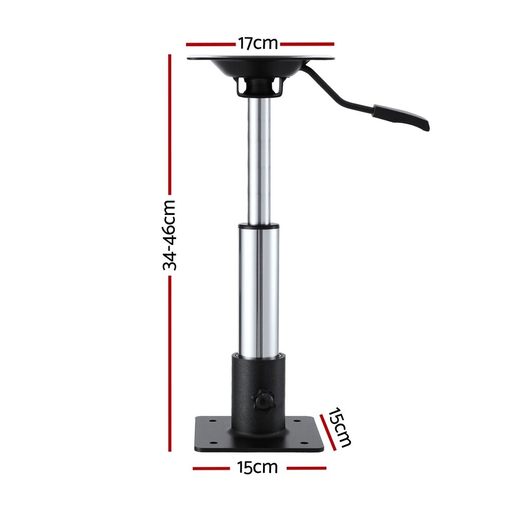 Transform your time on the water with our Gas Lift Boat Seat Pedestal - the ultimate upgrade for unbeatable comfort and stability. Effortlessly customize your seating height with the ultra-smooth gas lift, whether you're fishing, cruising, or just relaxing. The oversized 17 x 17 cm top plate guarantees rock-solid stability, while the 360 degrees swivel lets you move freely and safely around your boat. Built tough to resist corrosion, the heavy-duty steel base and premium aluminium post stand up to the harshest marine conditions. Installation is a breeze - fits most seats with standard 4-hole mounts. Supporting up to 181 kg, this pedestal delivers strength you can trust. Don't settle for less - elevate your boating experience with this must-have seat pedestal today!