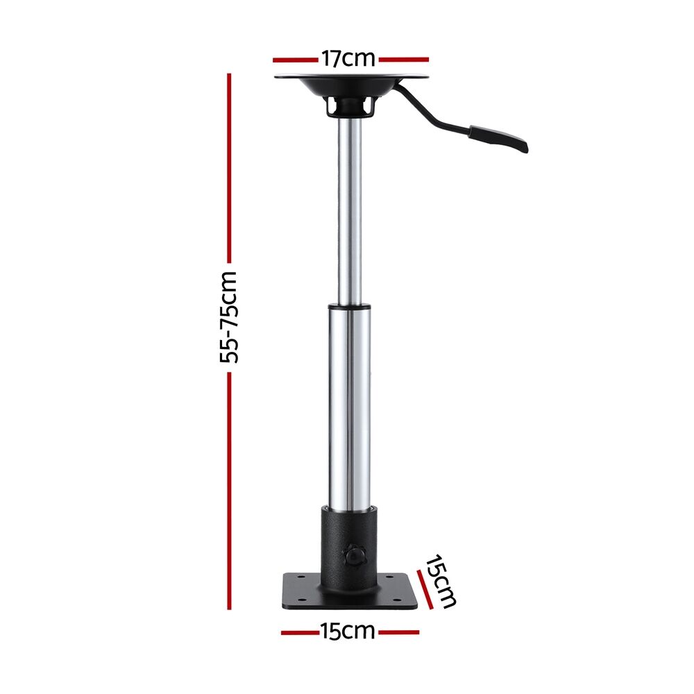 Transform your time on the water with our Gas Lift Boat Seat Pedestal - the ultimate upgrade for unbeatable comfort and stability. Effortlessly customize your seating height with the ultra-smooth gas lift, whether you're fishing, cruising, or just relaxing. The oversized 17 x 17 cm top plate guarantees rock-solid stability, while the 360 degrees swivel lets you move freely and safely around your boat. Built tough to resist corrosion, the heavy-duty steel base and premium aluminium post stand up to the harshest marine conditions. Installation is a breeze - fits most seats with standard 4-hole mounts. Supporting up to 181 kg, this pedestal delivers strength you can trust. Don't settle for less - elevate your boating experience with this must-have seat pedestal today!