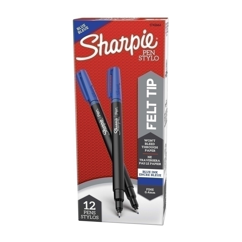 Sharpie Pen Fineliner Blue Bx12 features quick-drying, fade-resistant ink that won't bleed through paper that is both water and fade resistant. AP certified. Fine point and slim, contoured design. Tip size: 0.4mm. Color: Blue