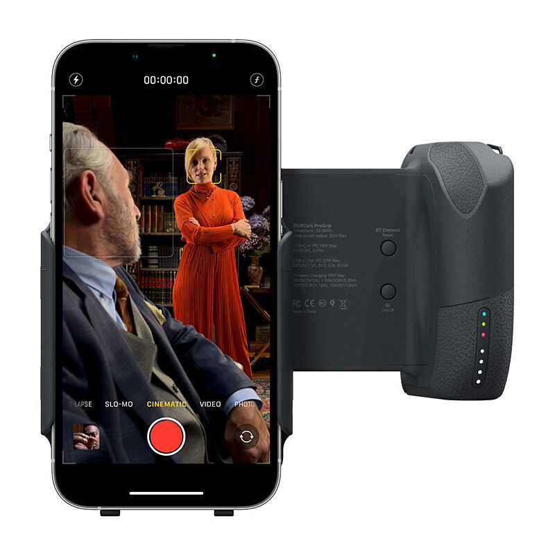 • The ShiftCam ProGrip is an ergonomic, camera-like battery grip that makes it even easier and more comfortable to capture great photos and create amazing video content with your phone. It has thoughtful features like a wireless shutter button, a built in powerbank with wireless charging to keep your phone powered even on long shoots, a rotating mount that lets you shoot in portrait or landscape mode, and a hand strap for added support and stability.
