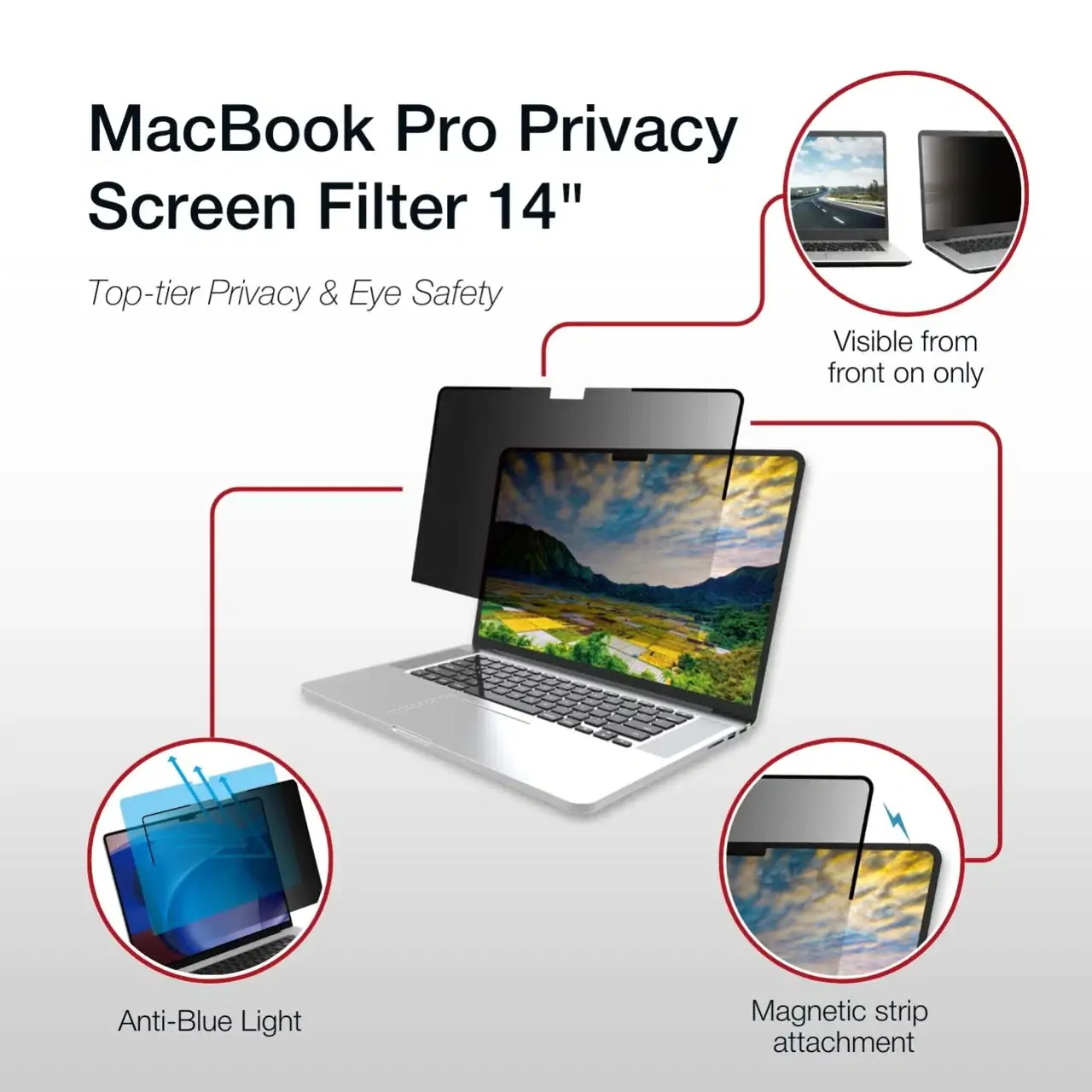 Enhance your privacy with the Magnetic Privacy Screen Filter, designed for Macbooks. It blocks side views beyond 60 degrees, keeping sensitive work and personal content secure. The blue light reduction helps minimize eye strain, while the anti-glare surface ensures clear, comfortable viewing in bright environments. Easily attach it with ultra-thin magnetic strip allows for easy attachment without affecting sleep mode when MacBook closed.