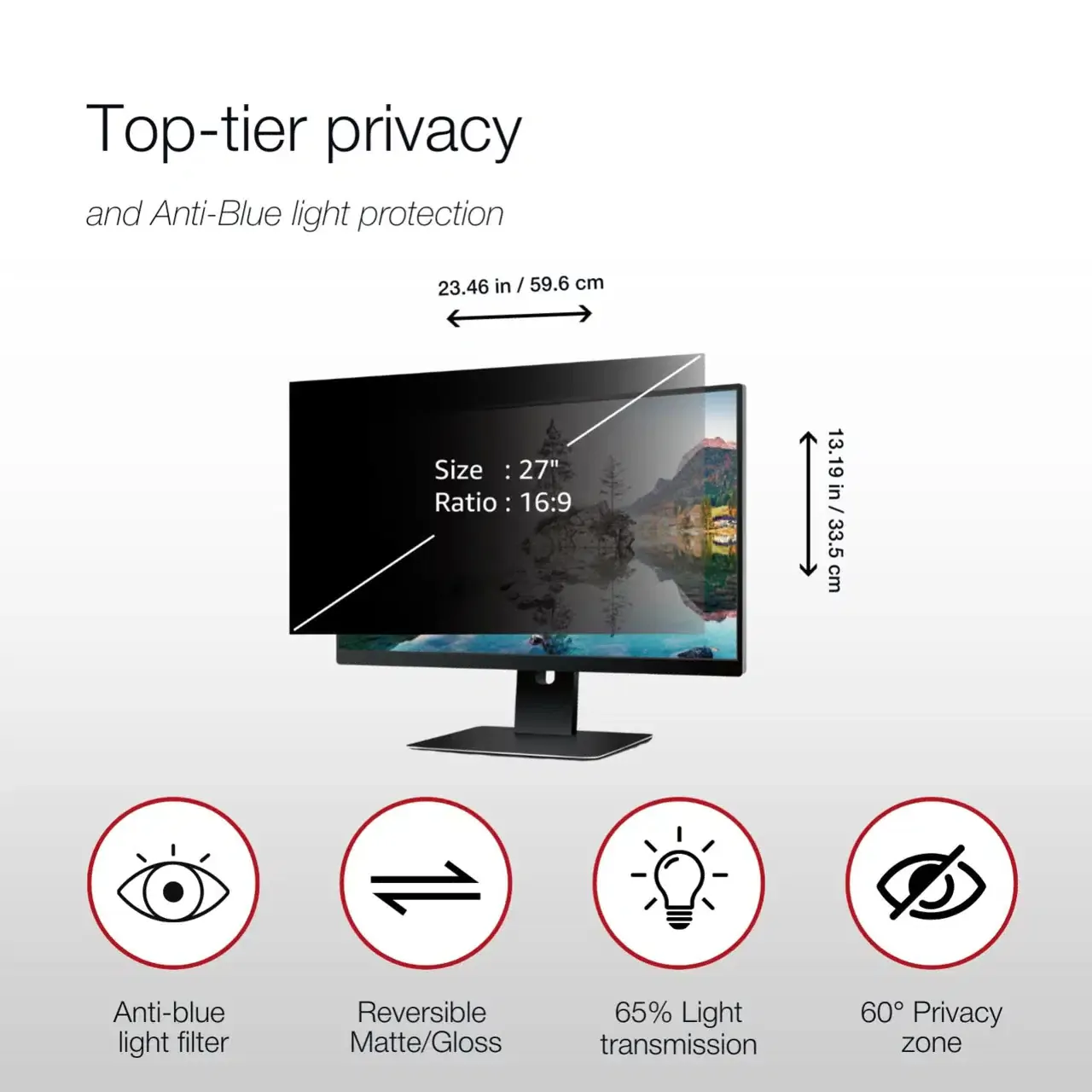 Enhance your privacy with the Privacy Screen Filter, designed for monitors. It blocks side views beyond 60 degrees, keeping sensitive work and personal content secure.The blue light reduction helps minimize eye strain, while the anti-glare surface ensures clear, comfortable viewing in bright environments.Easily. attach it with adhesive strips or slide tab mounts for a secure fit. Perfect for open offices and public spaces where confidentiality matters. Upgrade your display with superior privacy and eye protection.
