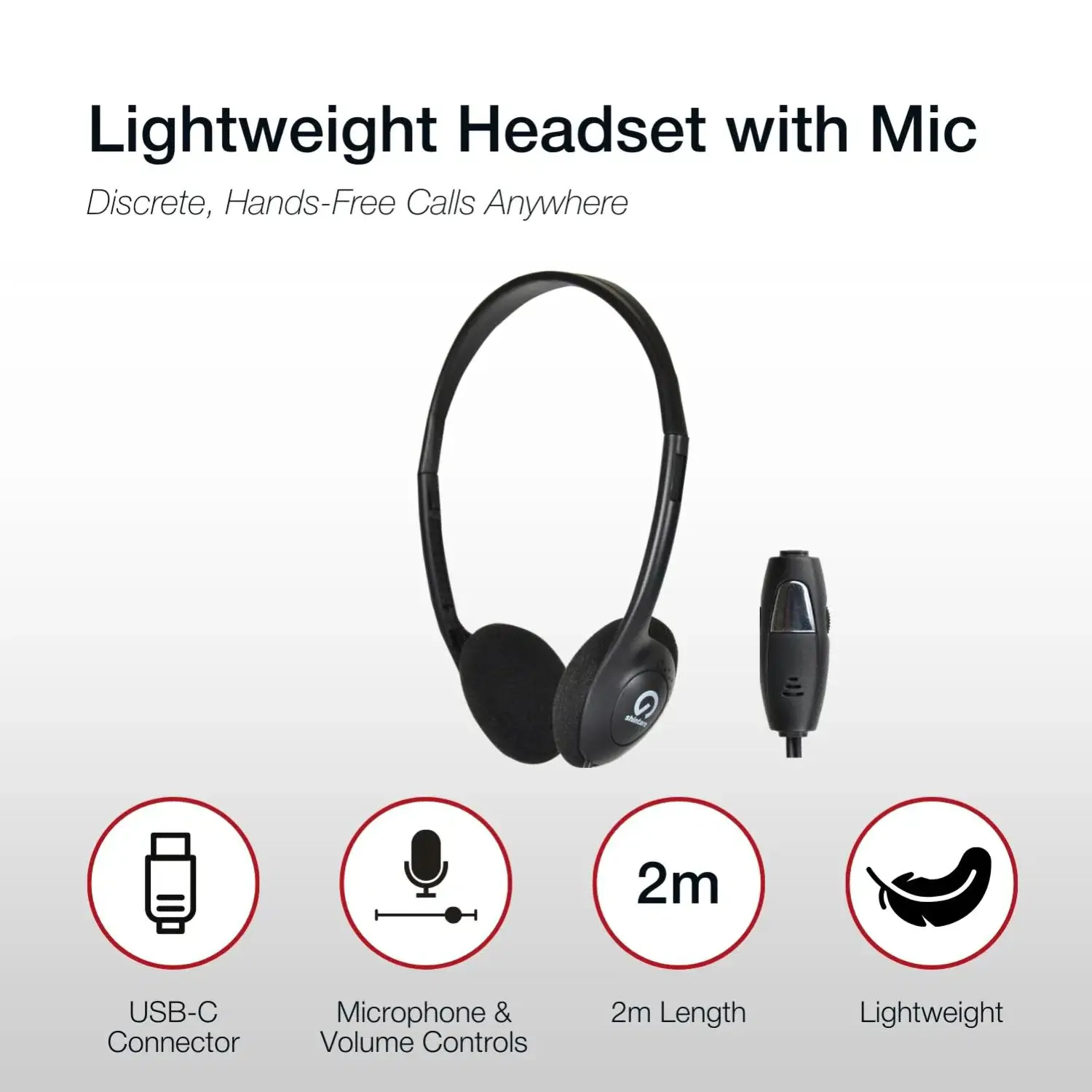 Shintaro USB-C Lightweight Headset w/ Inline Microphone, Adjustable Headband and In-line Volume Control, Ideal for Phones, PCs, Tablets