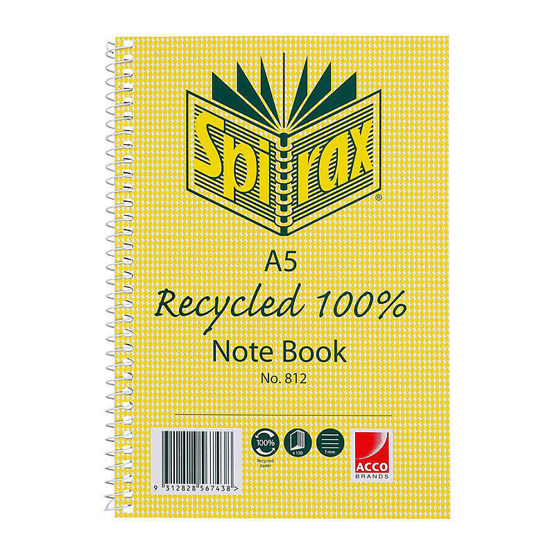 Spirax 812 Recycled Notebook A5 120 Pg Pk5