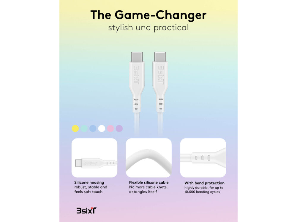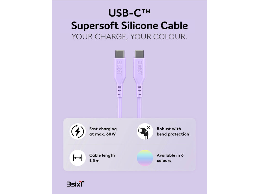 SPLASH by 3sixT – a bold new range of coloured, silicone USB-C cables designed to add a vibrant touch to your everyday tech. With a generous 1.5-metre length, these cables combine flexibility, durability, and standout style to make charging and syncing your devices easier and more fun. Crafted from ultra-soft silicone, SPLASH cables resist tangles and feel great in your hand, while delivering fast, reliable performance that 3sixT is known for.