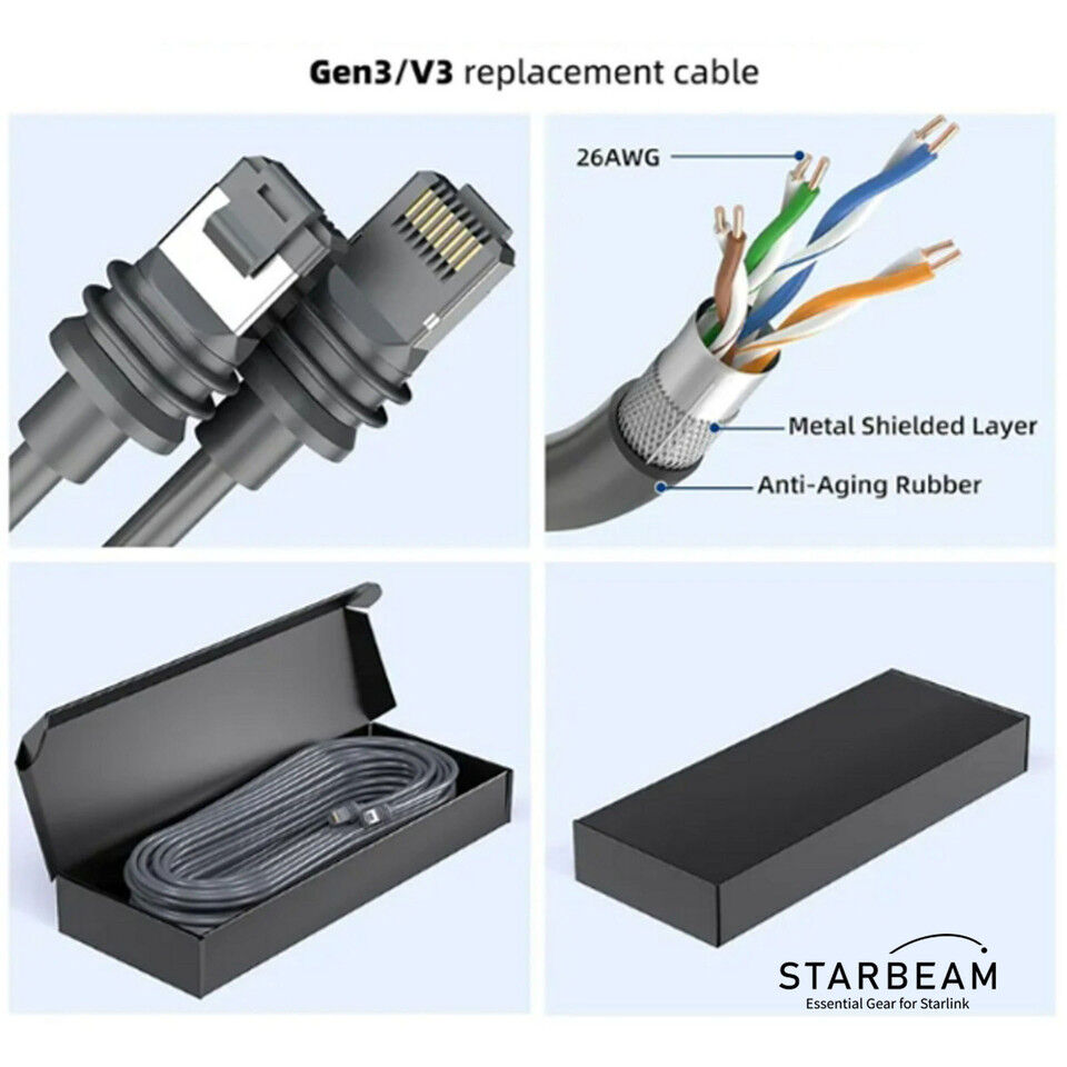Upgrade your Starlink Gen3 setup with a durable and high-performance Ethernet cable designed for stable outdoor connectivity.