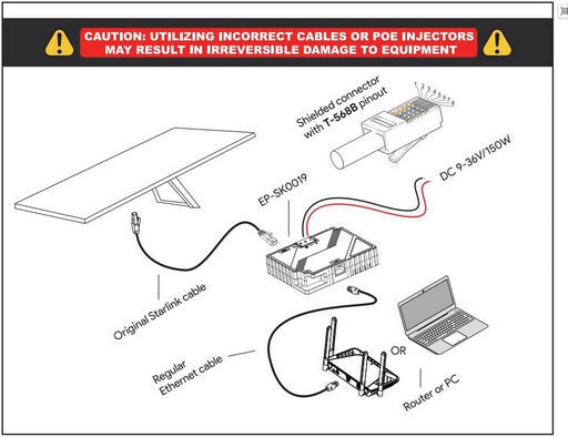 The high-powered 2-in-1 PoE injector is designed for Starlink® Gen3 systems. It integrates PoE injection, DC Step-Up conversion, and power supply into a single device, delivering up to 150W with input of DC 9–36V/15A and output of DC 54V/3A. Supporting Gigabit Ethernet speeds and surge protection up to ±8KV. Ideal for both residential or mobile networking setups.