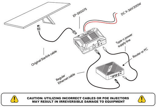 This compact, all-in-one 200W PoE injector is specifically designed for Starlink® Gen3 dishes. Featuring a wide DC input range of 9-36V, it steps up the power to 54V DC at 3A, delivering the required output over a single Gigabit Ethernet (1000Mbps) link. Ideal for high-power devices demanding seamless network access. It also includes USB-A (12V 3A max) and USB-C (5 V 3A max) ports for charging routers, cameras, or other peripherals. The unit is equipped with built-in surge protection (up to ±8kV) and ESD protection (±15kV in air, ±8KV contact) to ensure reliable operation.