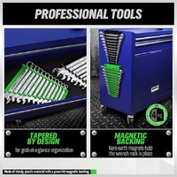 • Powerful rare-earth magnets hold the wrench rack in place, whether it's in a toolbox drawer or on the side of tool chest.