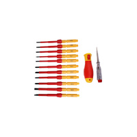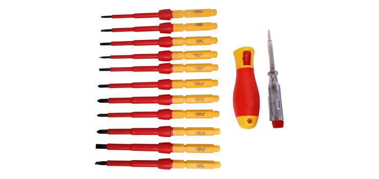 Includes a range of screwdrivers for servicing mains appliances. 100mm length bits with high comfort rubberised handle. 1000V rated.