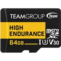 Team Group HIGH ENDURANCE 64GB Micro SDXC UHS-I U3 V30 4K 100MB/s (Designed for Monitoring) Stable Durable Long Lasting Flash Memory Card for Security