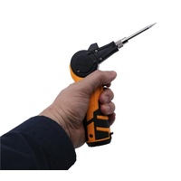 This compact and convenient soldering iron features a pivoting head for heard to reach angles & an LED light for low light repair work. It heats up quickly to reach temperatures of up to 450°C,making it suitable for both lead & lead free solder. Perfect for small repairs,DIY electronics, or on-the-go soldering, and can be safely stored in the toolbox when not in use with the included tip cover.
