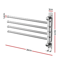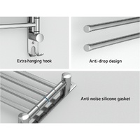 Give your bathroom a glossy makeover with the new sleek and functional Towel Rack. Crafted with quality stainless steel, the rack is rust and corrosion-resistant to ensure long-lasting use. Designed with convenience in mind, the four rungs can swivel up to 180 degrees to easily adjust to your desired position. The rack features an anti-drop design to keep clothes and towels in place, while anti-noise silicone gaskets keep the rack silent. An extra hanging hook helps you hang additional towels and clothes. With its easy installation process, this elegant storage solution is perfect for your bathroom, kitchen or laundry room. Upgrade your space and enjoy a clutter-free bathroom with our Towel Rack.