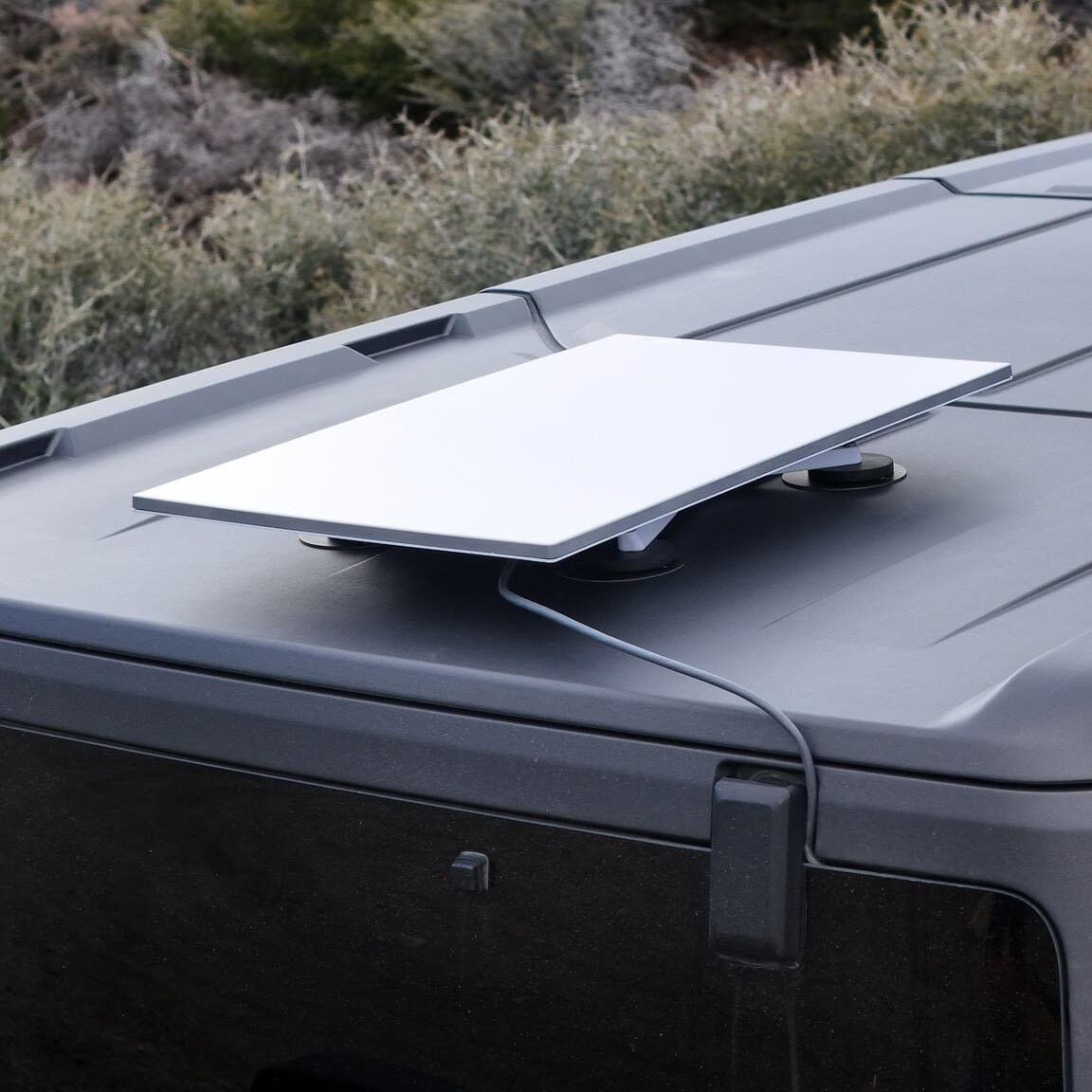 Release Lever: Fixed mount options (through bolt and VHB adhesive) come with a custom-designed lever, allowing easy removal of the dish when desired. This feature lets you quickly remove the dish from the vehicle and reinstall the Starlink kickstand to use in another location, such as at home or when parked under trees.
