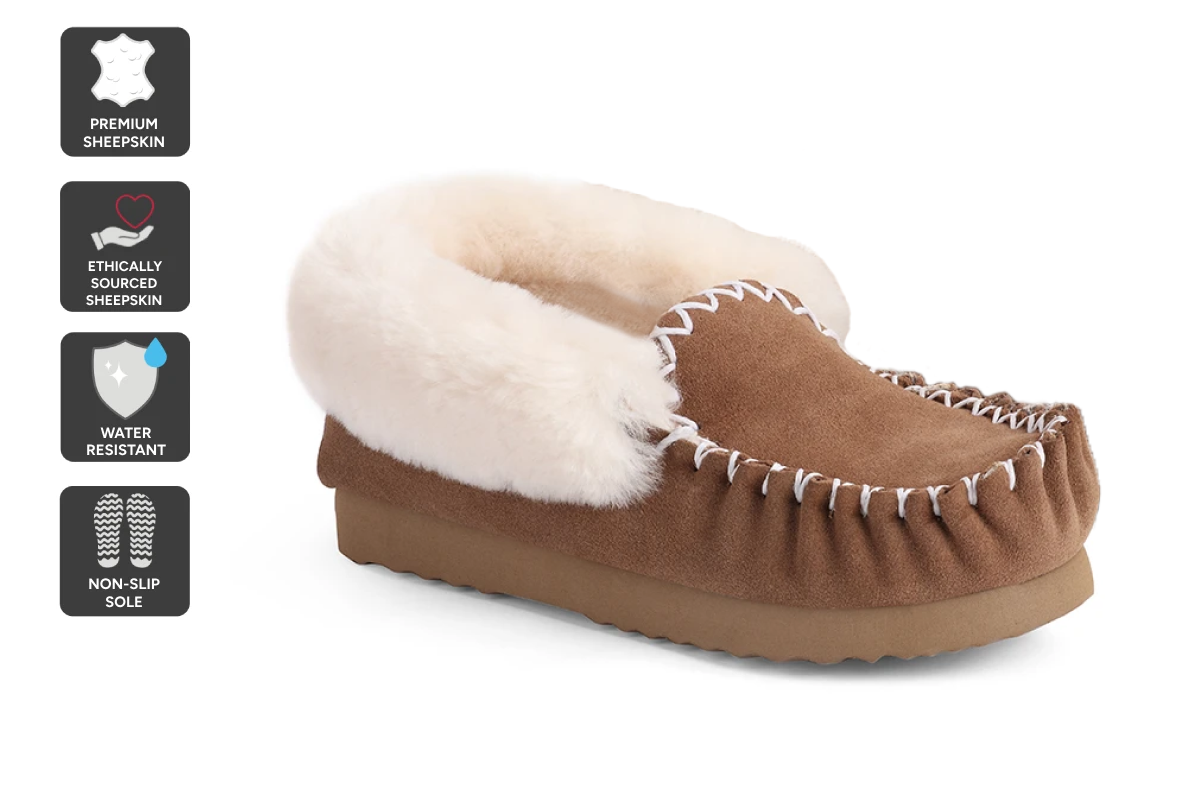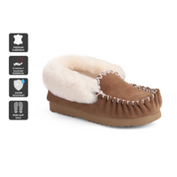 These moccasins are made from 100% sheepskin and are very comfortable and cosy. They are suitable for indoor and outdoor use. The wool is temperature regulating and moisture-wicking. The moccasins are also dirt- and bacteria-resistant. They come in a branded box, making them perfect as gifts. Outback Uggs are committed to the sustainable and ethical use of Australian sheepskin and supporting the local Australian farming community.