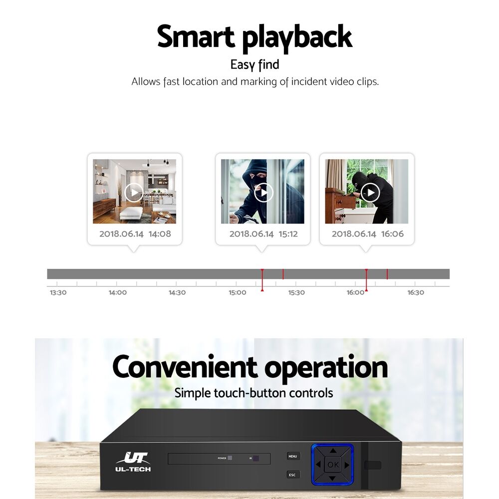 UL-tech CCTV Security System 8CH DVR 8 Cameras 2TB