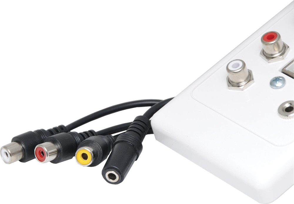 Flylead Type VGA Plates are fitted with HD9 female VGA connector, 3.5mm audio, USB type B and three RCA connections. Includes flylead connections for easy on-site termination. Supplied with two cover faceplates (see information below).